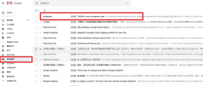 第五步:这一步很简单,Ins会向你填写的注册邮箱发送验证码,前去邮箱查看验证码,输入验证码即可完成注册。如果你在收件箱中未找到验证码也不要着急,建议点开社交分类或全部邮件进行查看,因为有些时候,Ins的邮件可能会被自动归为社交邮件或垃圾邮件。