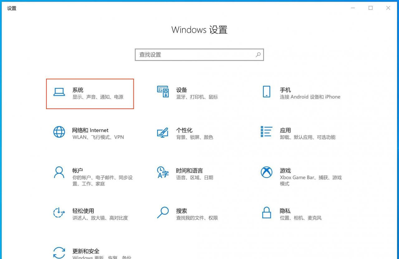 开始菜单 - 设置 - 系统