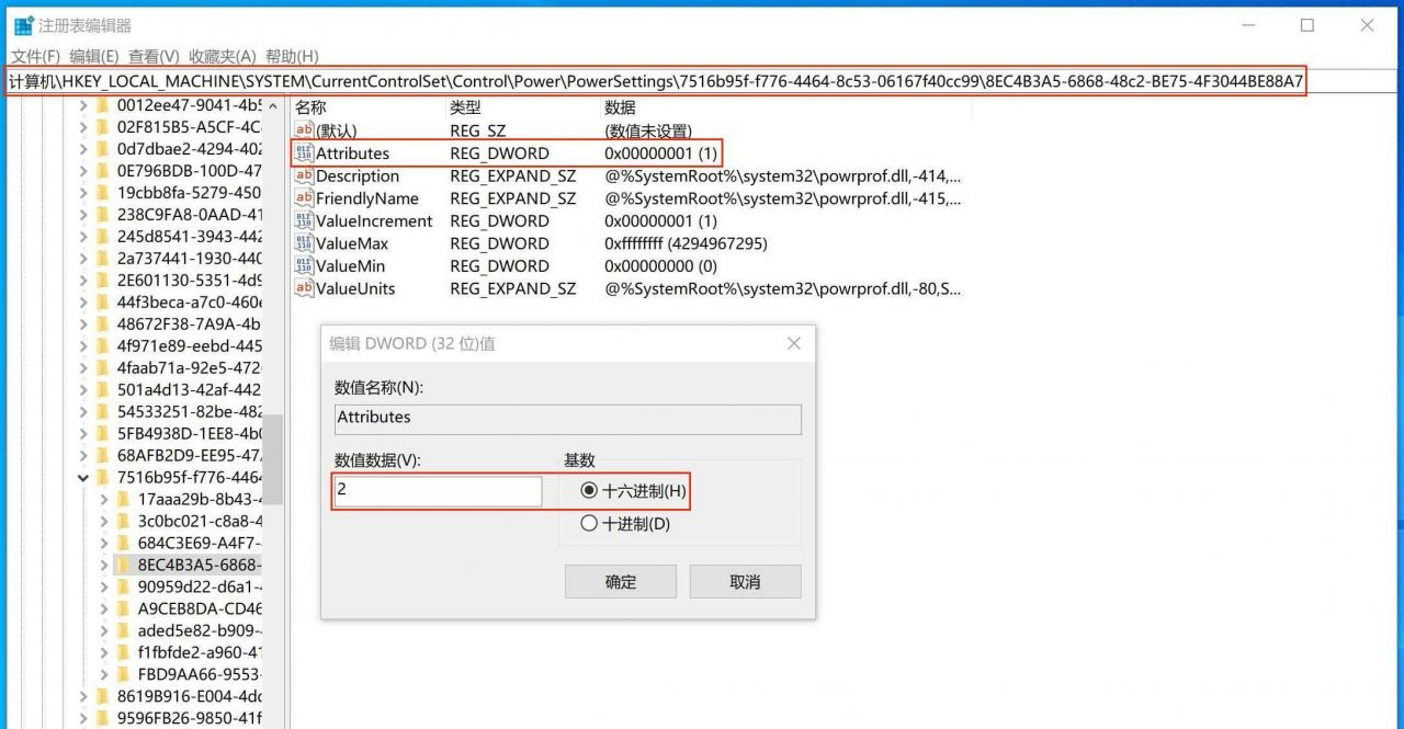 同样继续查找以下参数,双击 Attributes将数值修改为 2即可.