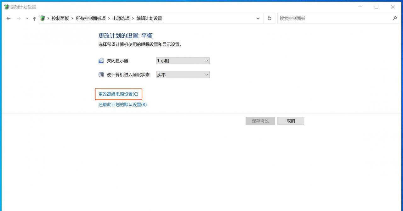 更改高级电源设置