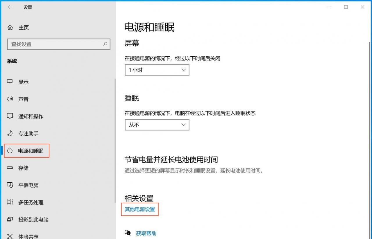 电源和睡眠 - 其他电源设置