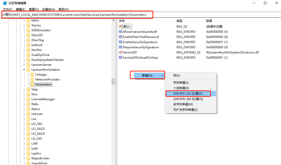 HKEY_LOCAL_MACHINESYSTEMCurrentControlSetServicesLanmanWorkstationParameters