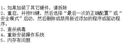 这个停止信息表示Windows因为不能启动显卡驱动, 从而无法进入图形界面。 通常是由于显卡的miniport drivers 没有成功加载或者是存在与显卡的硬件冲突(比如:与并行或串行端口冲突)
