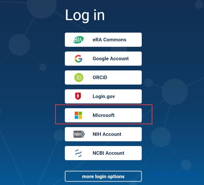 3、在进入的界面,我们可以看到很多登陆pubmed的方式,这些登陆方式很多都是国外的,推荐使用Microsoft入口,进行登陆。