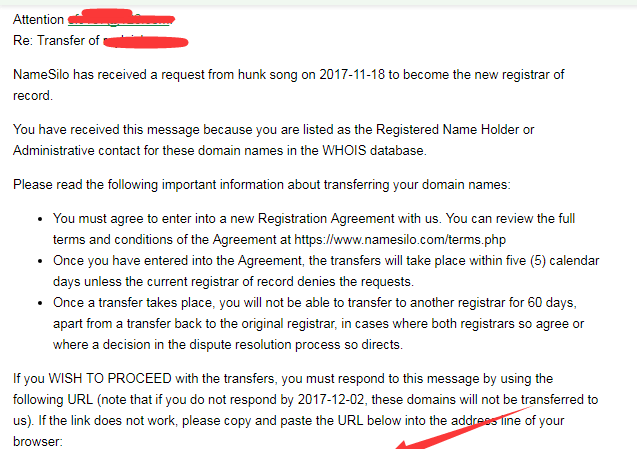 3月25日,工信部发布了《互联网域名管理办法(修订征求意见稿)》,意思就是可能以后外国平台上注册的域名不能使用国内的空间了。看到这个消息,我马上查看了一个我的域名分布情况,有几个重要的域名都在万网上,想到以后可能有新的变动,就马上把万网域名转到namesilo了。下面介绍万网域名转出到namesilo流程