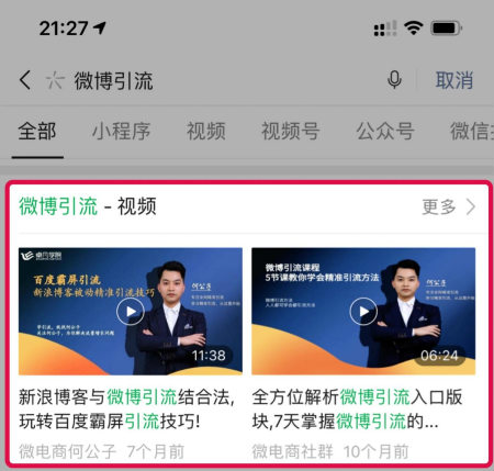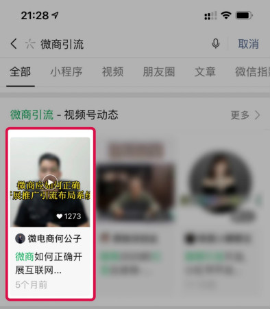 视频内容展示在微信搜一搜的全部有4个位置,你能够抢占2~4个,自然就可以实现霸屏效果。