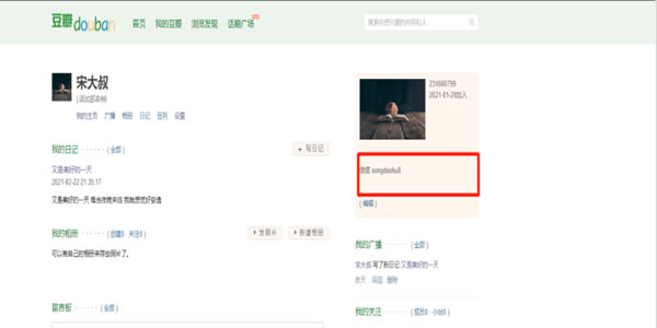 它是可以留微信号的 只留微信号或者你的扣扣号 其他的什么都不要填 当然我们不是为了在这里留微信而引流的哦 这一步很重要 是为了接下来的骚操作 其他的你爱怎么填怎么填 记住 我们来豆瓣就是单纯的引流 并且要快速引流 不要在乎一些细枝末节的东西