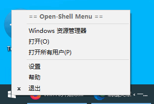 (1)在开始菜单按钮处点击右键弹出Open-Shell控制菜单,如下图所示: