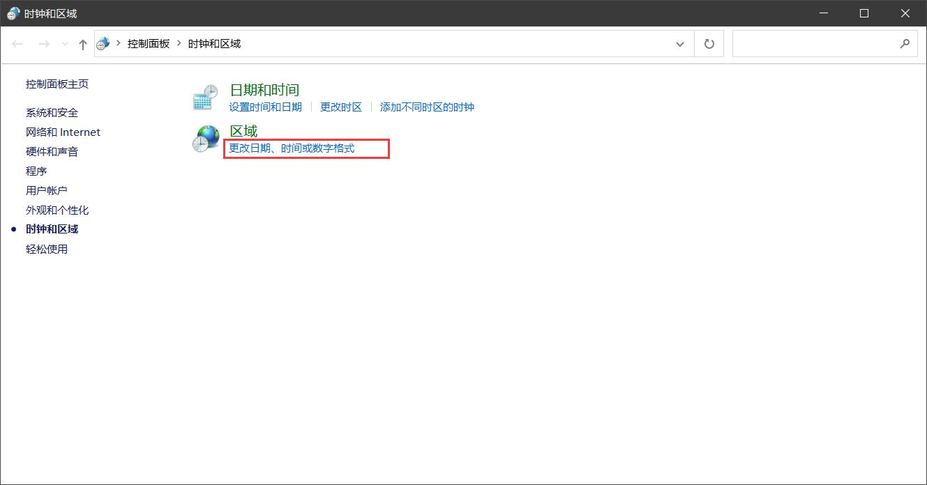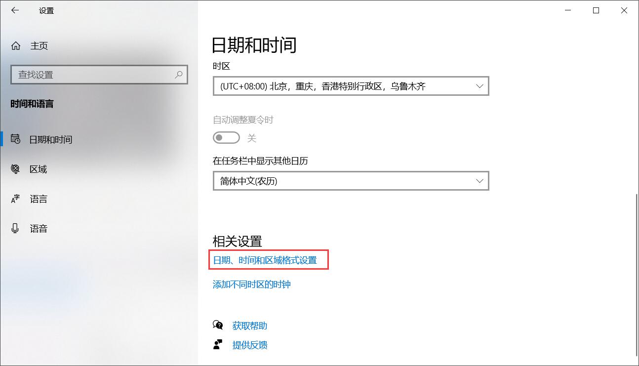 2. 在打开的“日期和时间”设置窗口中,找到“日期、时间和区域格式设置”,并点击进入
