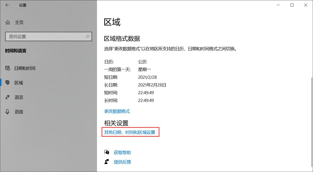 3. 此时打开“区域”设置,再找到“其他日期、时间和区域设置”,并点击进入