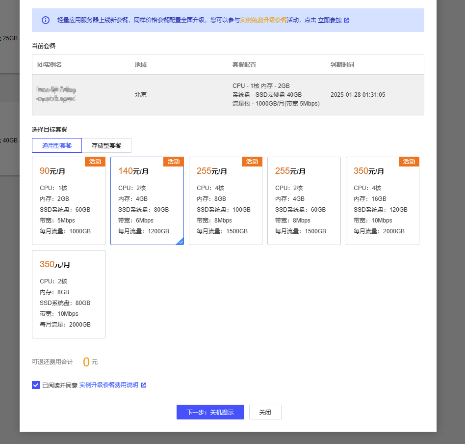 三、打开:https://curl.qcloud.com/kPmOhrpd 免费升级服务器为2H4G6M服务器,注意升配后不再享受校园续费,务必跟着第二步买满四年再升级!