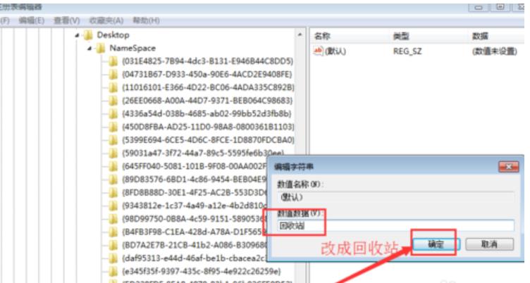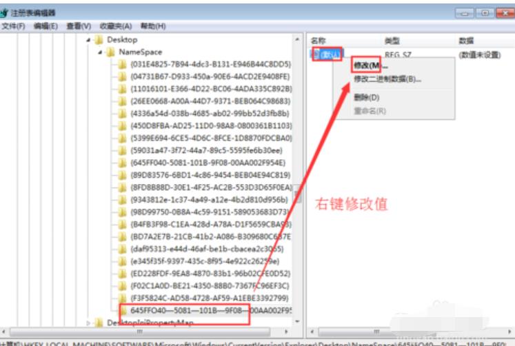 并设置值为回收站然后重启电脑即可,恢复删除的文件
