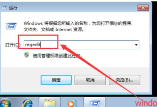 2,windows键+R键,弹出运行界面,输入regedit,进到注册表界面