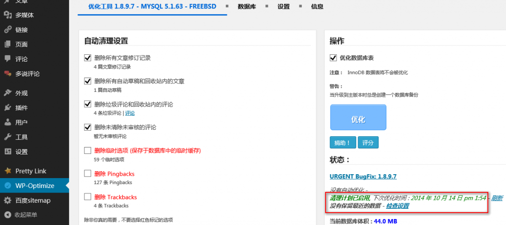 WordPress自动清理优化数据库插件:WP-Optimize