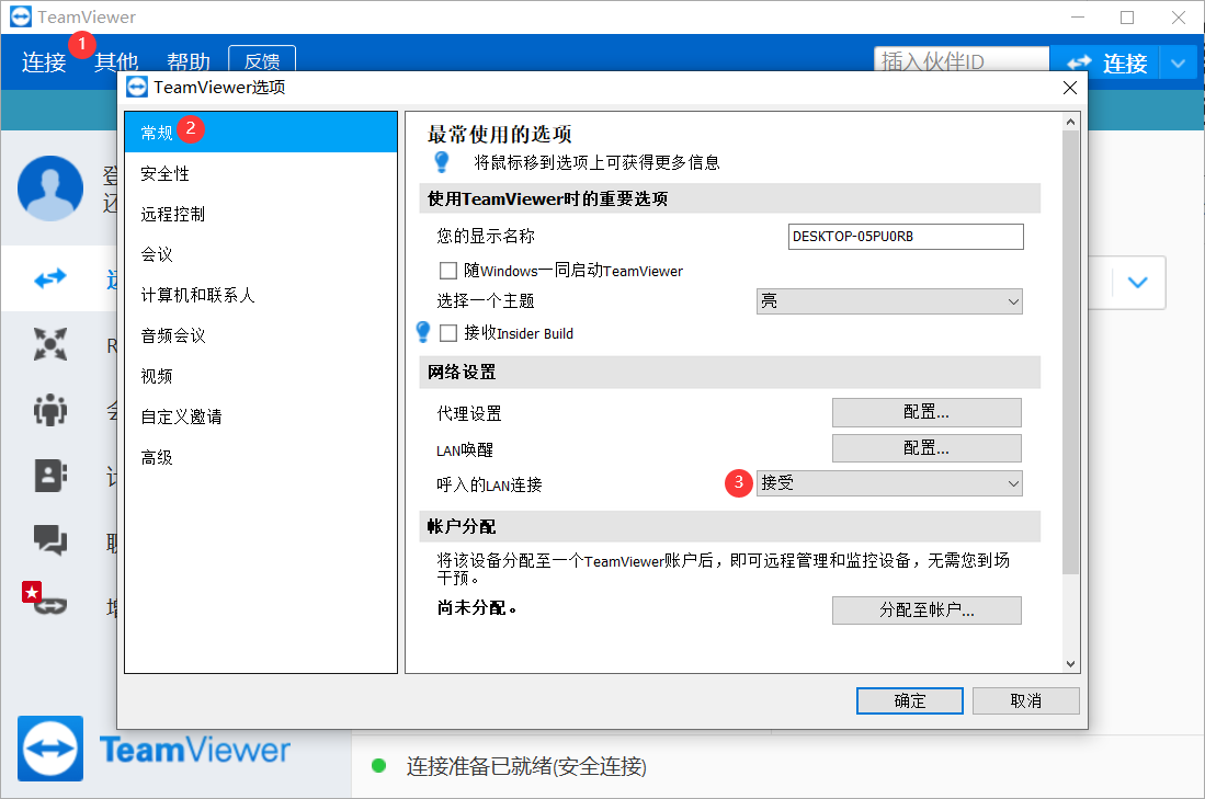 受控端teamviewer设置