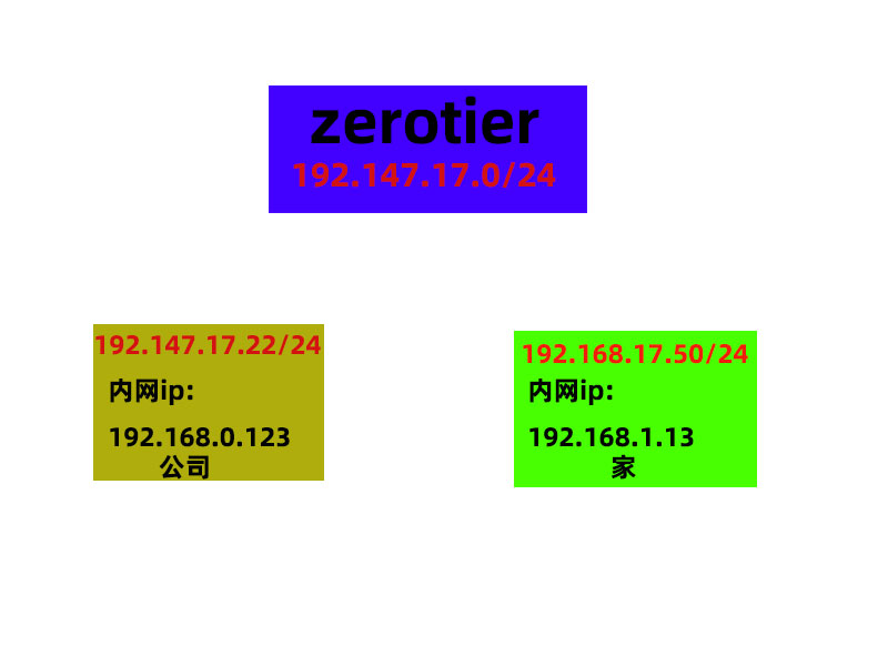 注:图中省掉了公网IP,因为公网IP多少不重要,只要主机能上公网,能连上ZeroTier,就能获得172网段IP了,也就可以互联互通了。