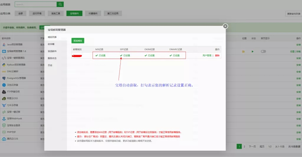 解析记录的值从哪儿来,该怎么设置,您可以先看第3点,配置宝塔邮局管理