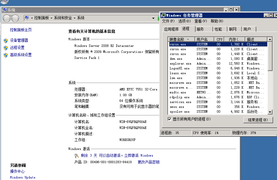9.为了降低镜像大小,已将默认8G的虚拟内存关闭,免费机内存只有1G,刷完机后请立即设置虚拟内存以提高性能(桌面右击我的电脑-高级系统设置-性能设置-高级-虚拟内存),否则运行需要大内存的程序时会因内存不足而导致远程桌面进程被强制关闭(如遇此请重新引导实例再设置)