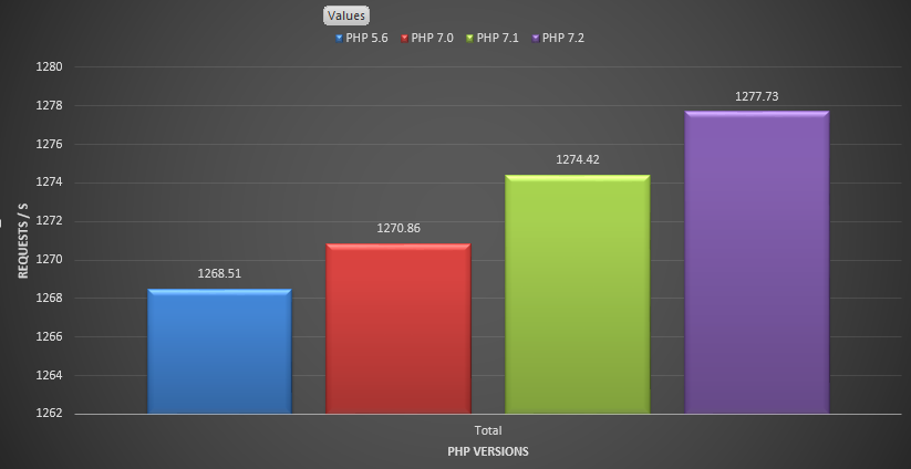 WordPress 最近的更新5.2.1已经不在支持老版本的 PHP 环境,没办法只能升级博客到7.0+的 PHP 环境。又在网上搜了一下 PHP 7.0+的版本应该是比之前的5.6性能提高了不少,找到一张对比图如下: