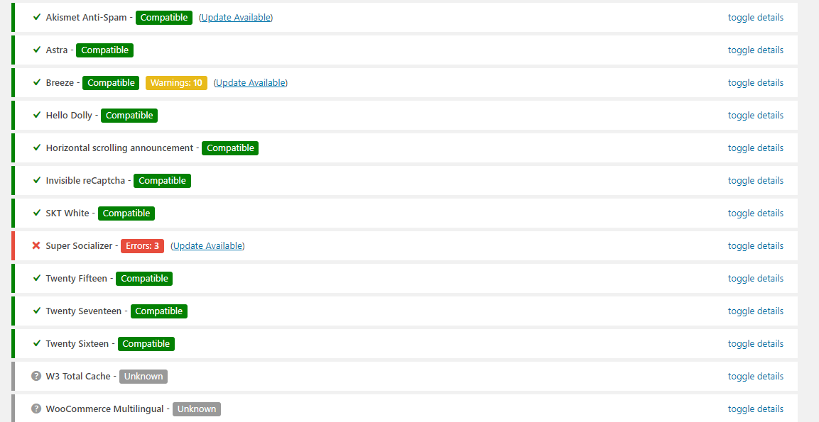 2、检查主题和插件是否支持最新版 PHP