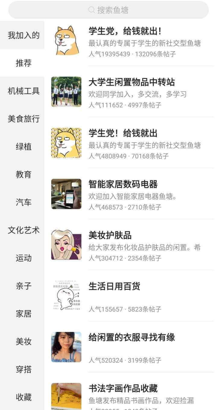 加入几个感兴趣的鱼塘,