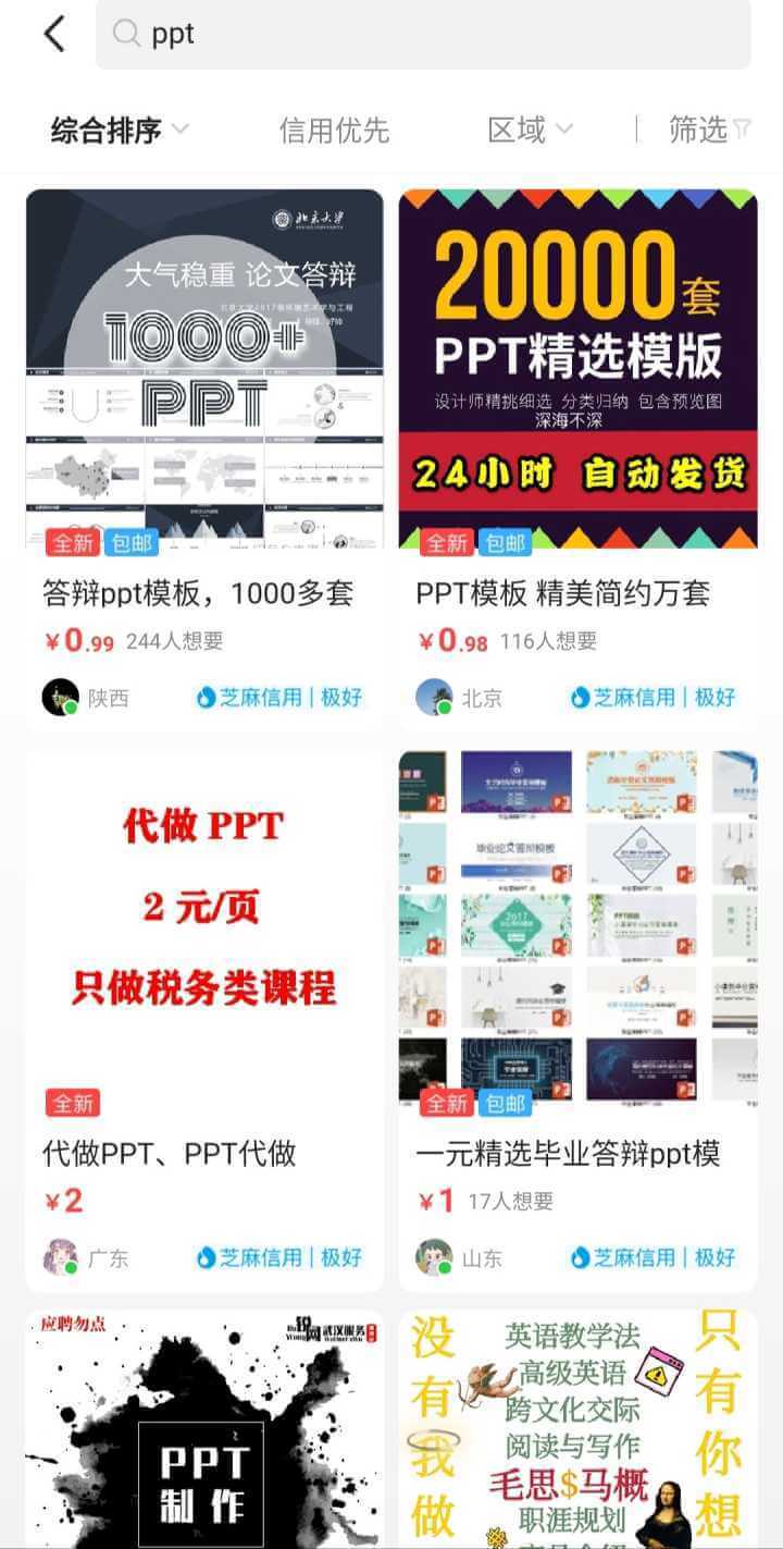 3、多看看本地视频,群,发现选品类别,寻找小类目多方向优化。举个栗子电子书、小吃技术、打包音乐广场舞文档、心理辅导、PPT模板、在线陪聊等一切被人需求的东西。