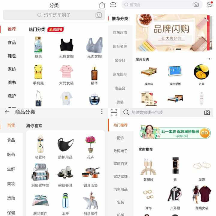 6.阿里爸爸,淘宝,拼多多等购物软件看分类,抖音快手看爆款。
