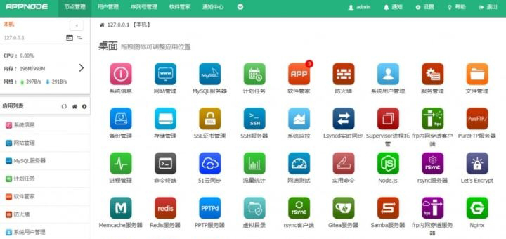 Appnode 是一款可视化的Linux集群服务器管理面板,它采用了集中式的设计,让你可以在多台服务器中安装并集中管理。Appnode 拥有强大的网站管理功能,提供Nginx、PHP、MySQL等网站套件,可以帮你快速搭建起可高效运行的网站,还支持伪静态、SSL证书、Gzip、页面跳转、定时备份等网站常用的功能,不需要熟悉代码也能优化网站