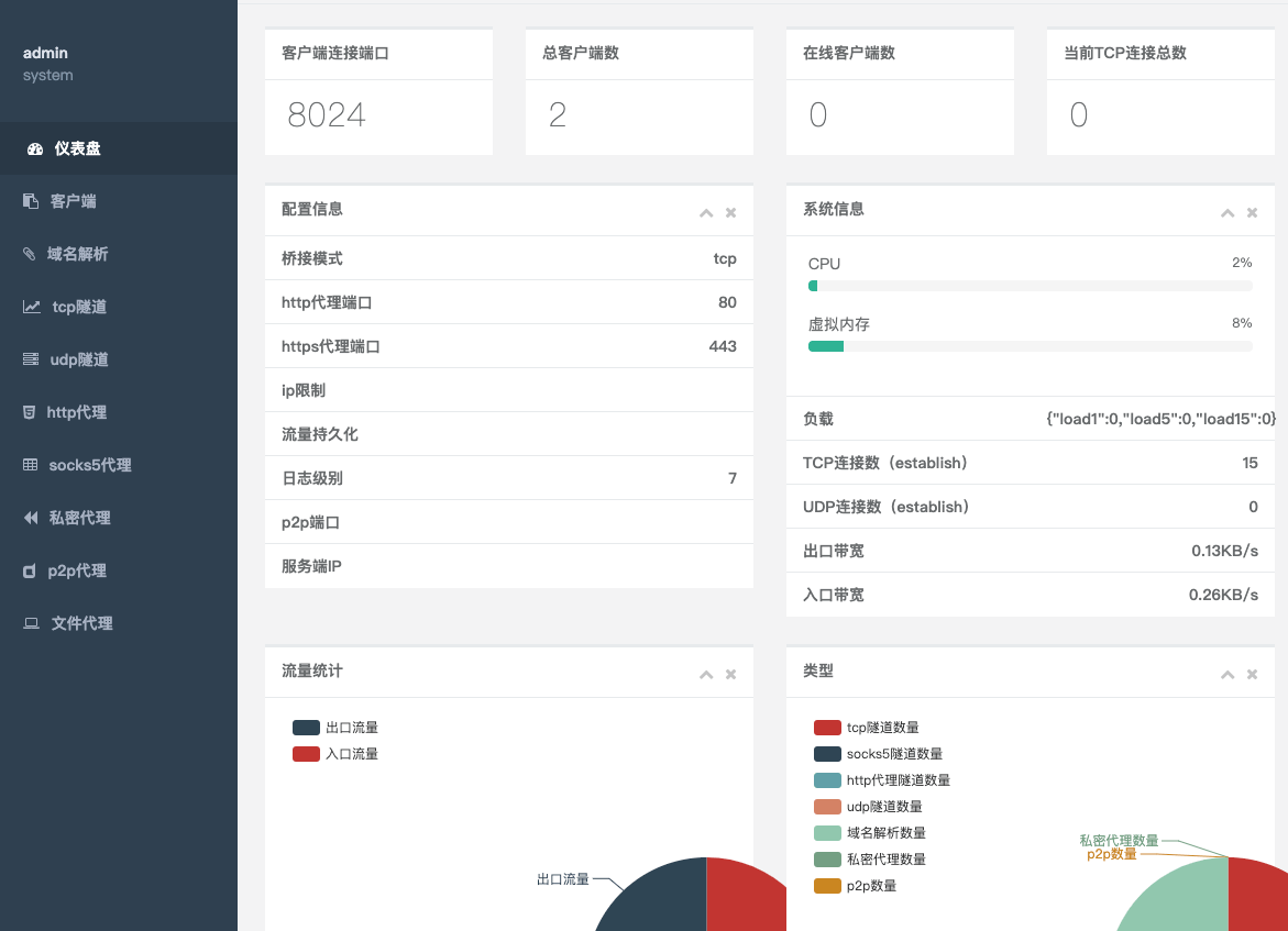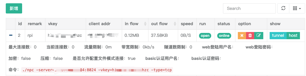 后来在网上找到了NPS服务,nps是一款轻量级、高性能、功能强大的内网穿透代理服务器。目前支持tcp、udp流量转发,可支持任何tcp、udp上层协议(访问内网网站、本地支付接口调试、ssh访问、远程桌面,内网dns解析等等……),此外还支持内网http代理、内网socks5代理、p2p等,并带有功能强大的web管理端。