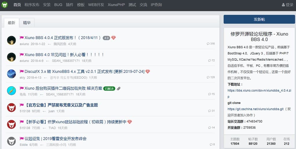 修罗Xiuno BBS 4.0是目前国内最好的开业轻论坛程序,目前国内著名的开源CMS程序Zblog的官方论坛就是采用Xiuno BBS搭建的。