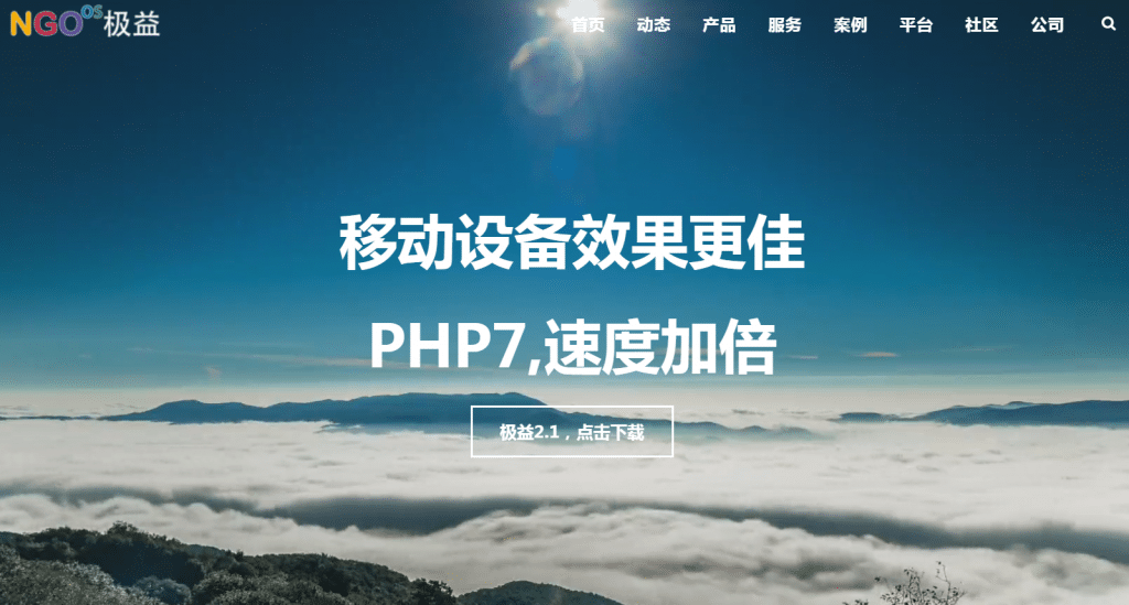 NGOOS,算是国内的TYPO3中文版,是极益开源公益平台是极益科技专门为公益组织开发的CMS平台,主要用于快速搭建一个网站,以及公益组织所需的常见功能。NGOOS基于世界顶级CMS——TYPO3搭建,但是大大降低了中国人使用TYPO3的门槛,提高了易用性,到手即所得。极益基于强大的TYPO3平台,传承优秀的基因和强大的基础。为落后的公益带来强大的雄性激素!TYPO3自1998年开发以来,历经17年的社群开发,具备上万的功能和模块,在全球支持上百万站点。联合国教科文组织、索尼、松下、Webex、奔驰、保洁均采用了该系统。国内的免费午餐也使用了该平台。同时,极益将开发面向公益的业务模块,支持H5,连接微信微博支付宝,打通多终端。而目前我们已经有了30多项针对国内公益的功能模块,未来只会更强大。