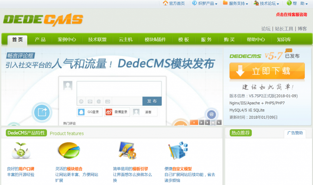 官方网站:http://www.dedecms.com/