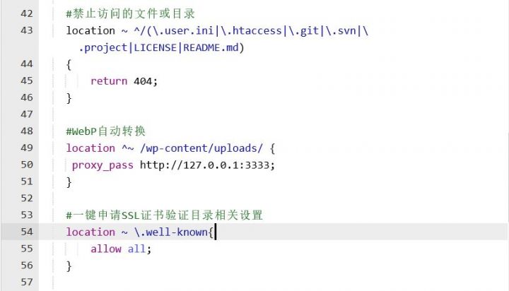 改完配置文件就保存关闭,然后去修改网站的 nginx 配置文件,添加以下内容:
