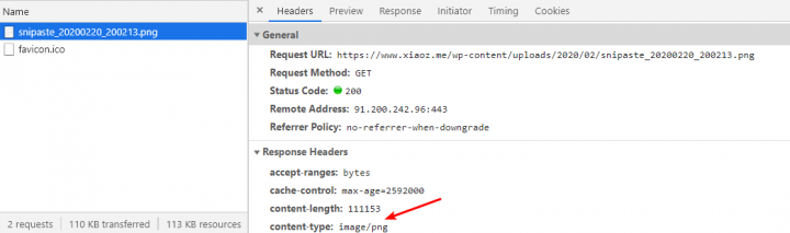 使用浏览器打开https://www.pzo.cc/wp-content/uploads/2020/02/snipaste_20200220_200213.png查看到图片大小为109Kb,图像MIME类型为image/png
