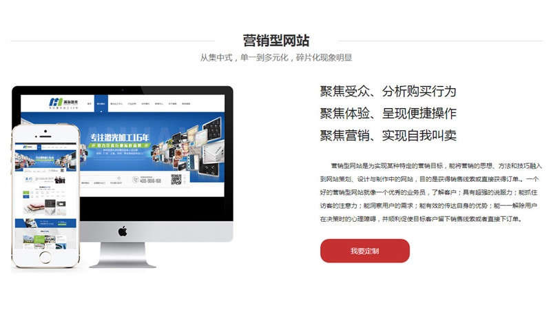 举个例子,对于企业营销型网站来说,就是通过网站获得订单,应该是订单,如果企业搞零售卖产品,显然无法满足工业化大量生产的需求,那么,通过企业在网站上的一系列宣传,吸引用户访问,然后最终获得订单,那么,这个企业网站可以称为营销型网站。