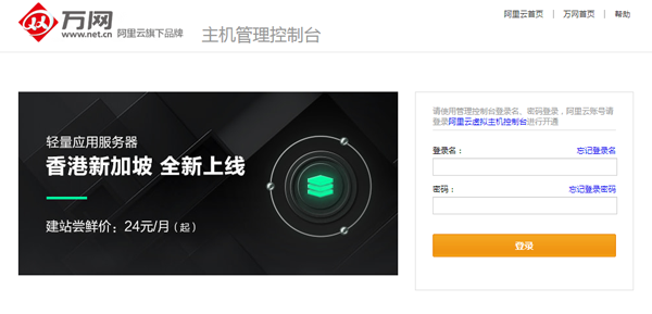 以前的万网.现在的阿里云 所以万网控制面板登录,阿里云控制台登录入口是同一个网址